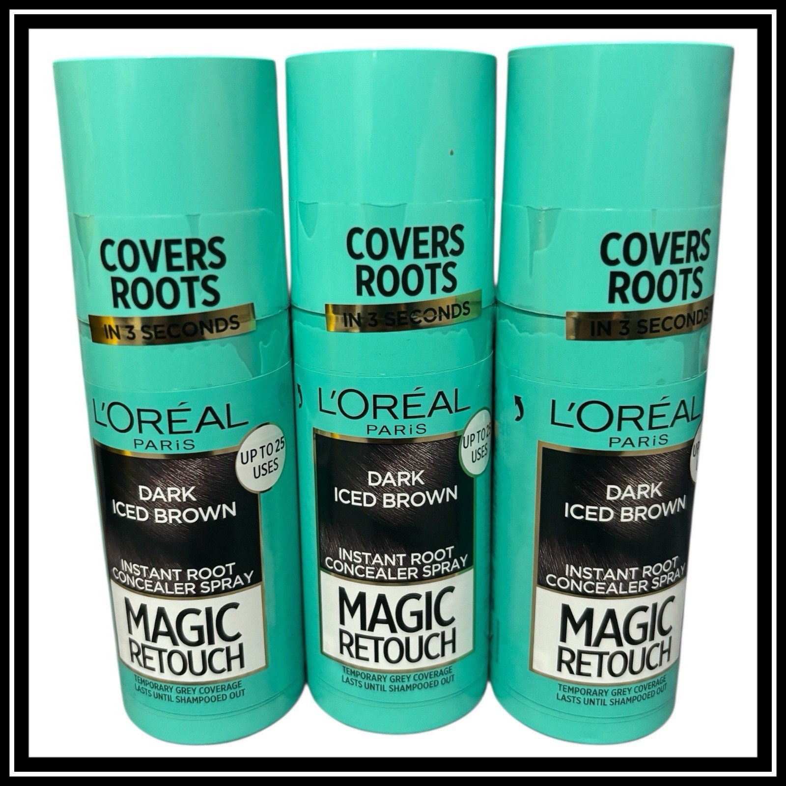 3 x L'Oreal Magic Retouch Dark Iced Brown Instant Root Concealer Spray 75ml New