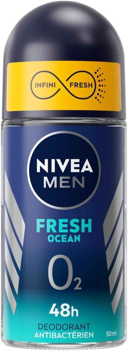Nivea Men Roll-On Deodorant Fresh Ocean 0% (1 x 50 ml), Men's 48-Hour Protectio