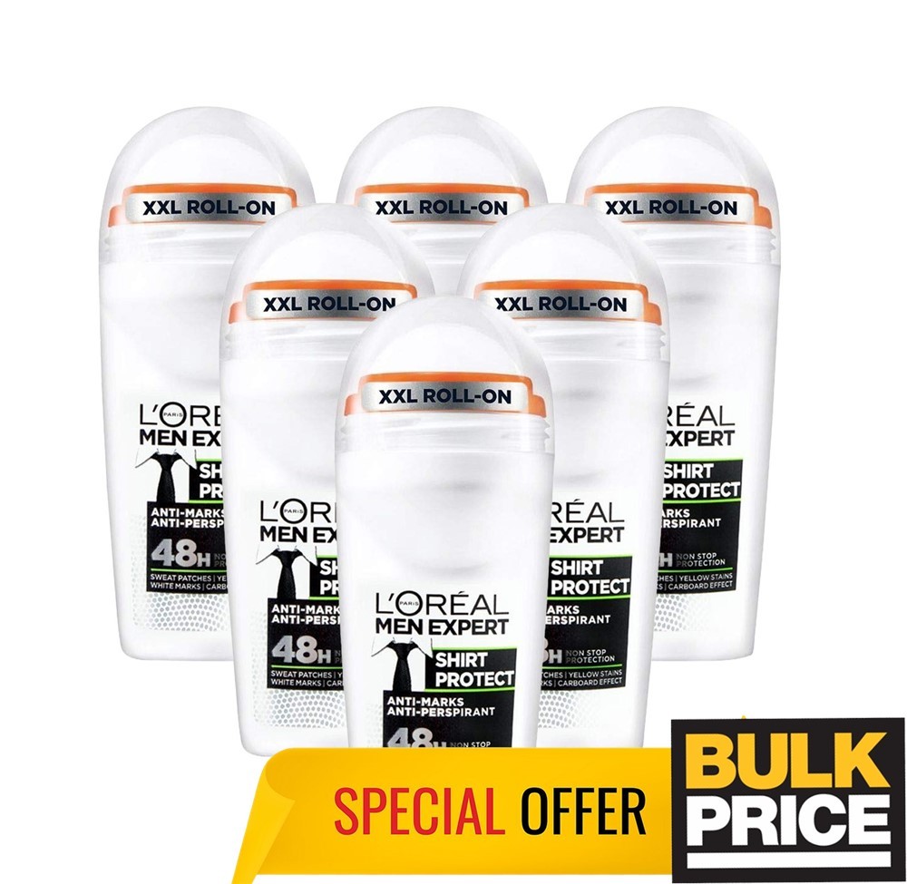 L'Oreal Men Expert Shirt Protect Roll-On Deodorant 50ml 6-Pack Anti-Stain Bulk