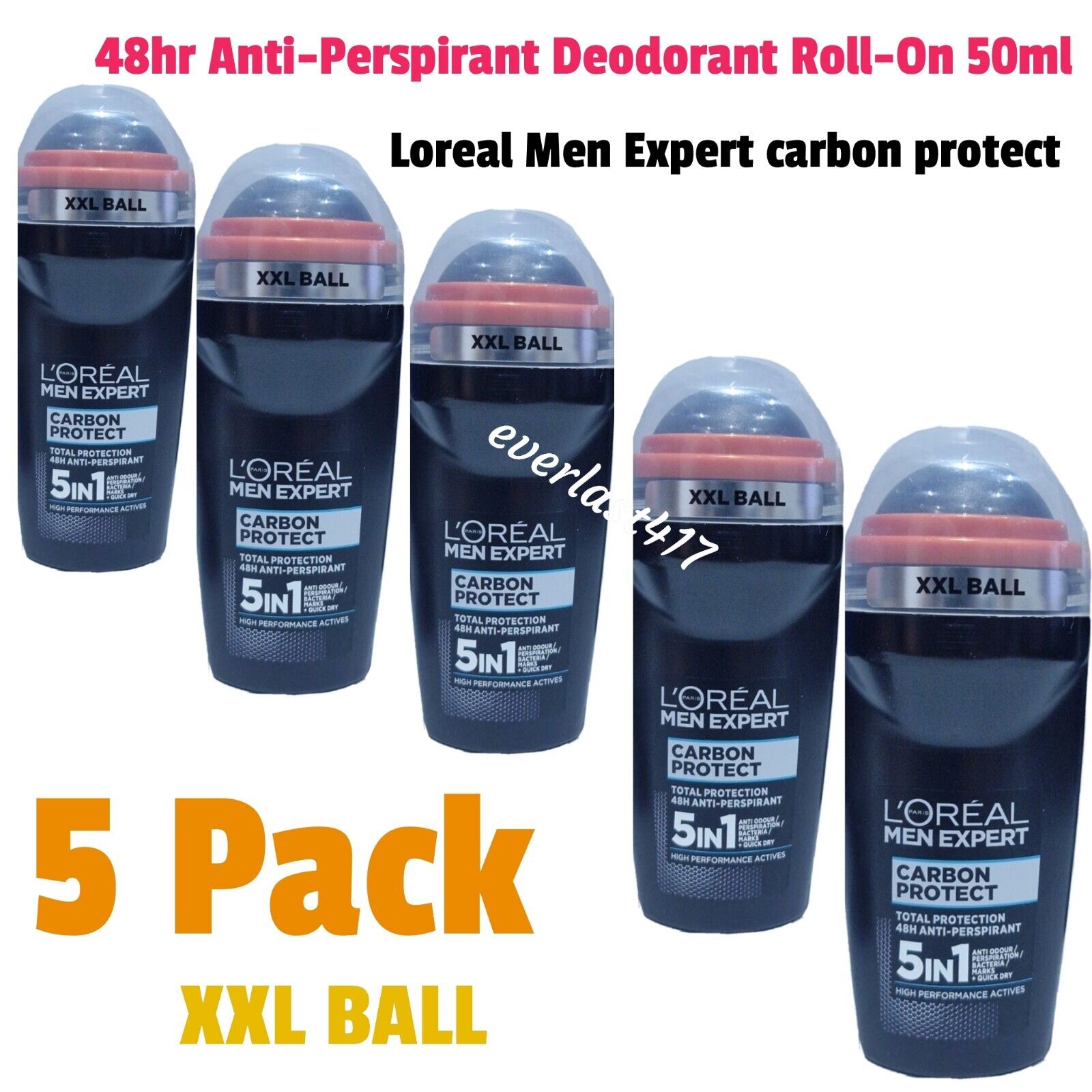 L'Oreal Men Expert Deodorant Roll On Carbon Protect 5in1 Anti-Transpirant 5 Pack