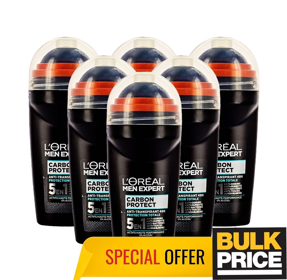 L'Oreal Men Expert Carbon Protect Roll-On Deodorant 50ml 6-Pack Bulk Buy Deal