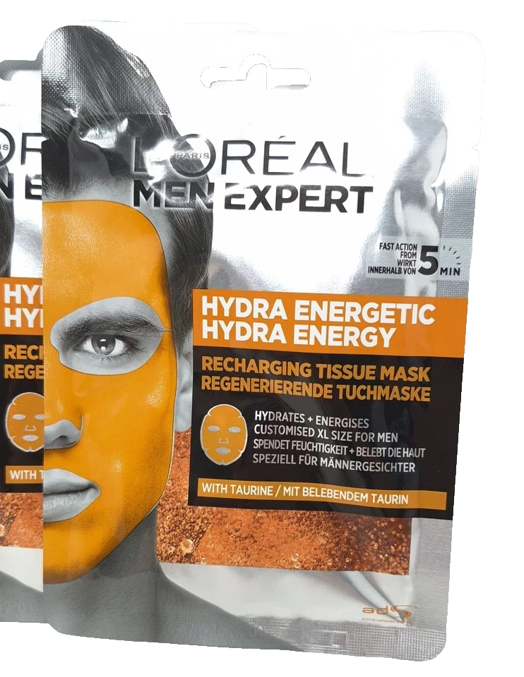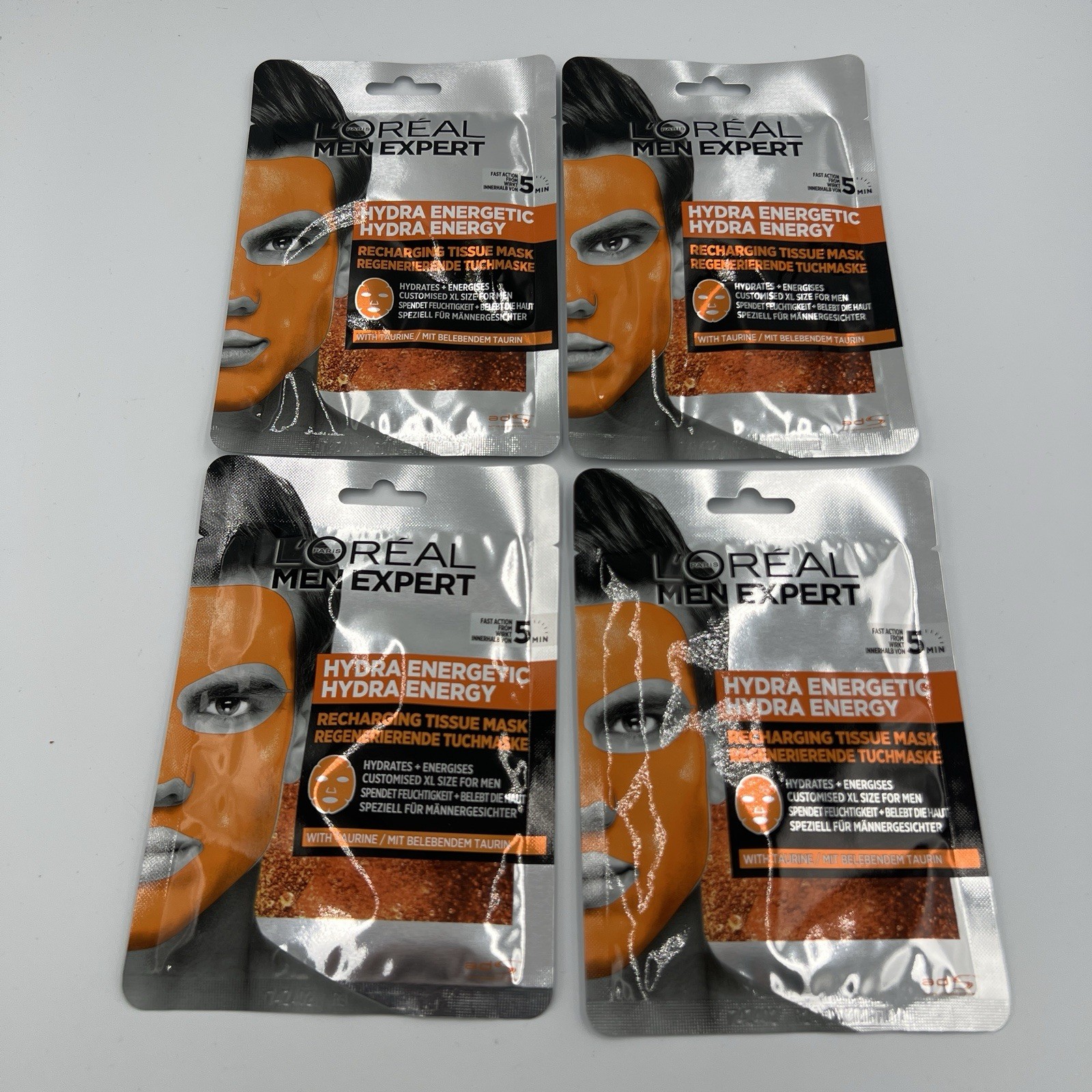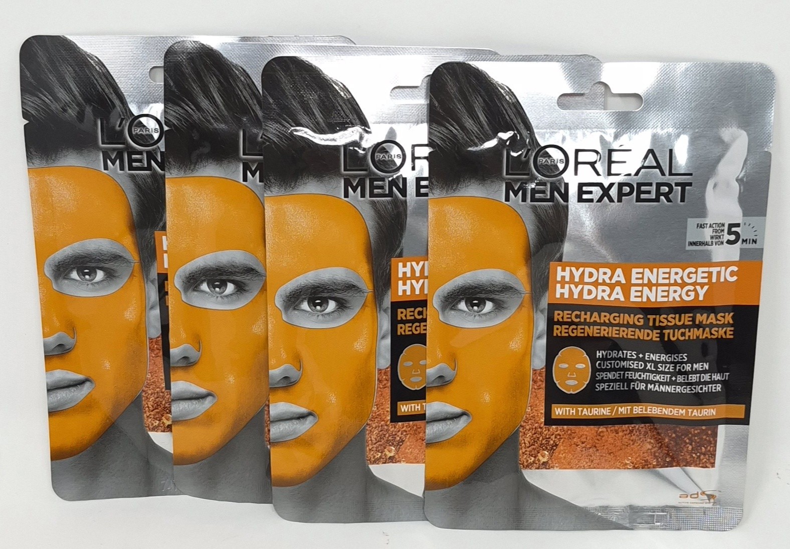 4 x L'Oreal Paris Men Expert Hydra Energetic Tissue Face Mask 30g 4x loreal mask