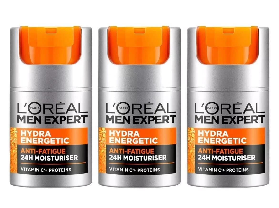 3 x L'Oreal Men Expert Hydra Energetic Anti-Fatigue 24H Moisturiser 50ml