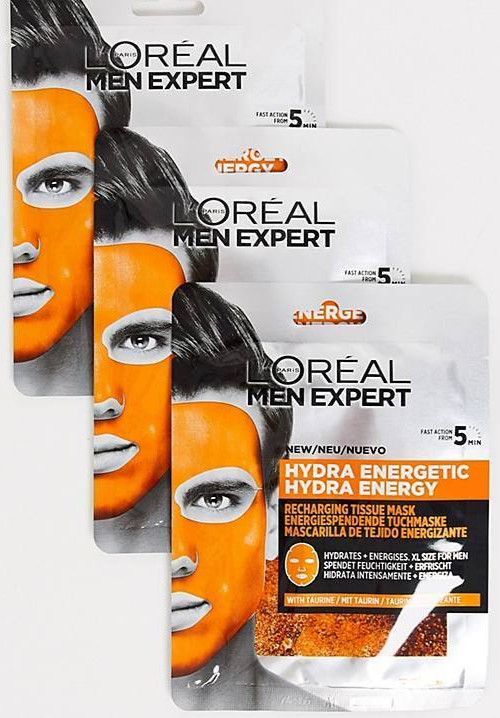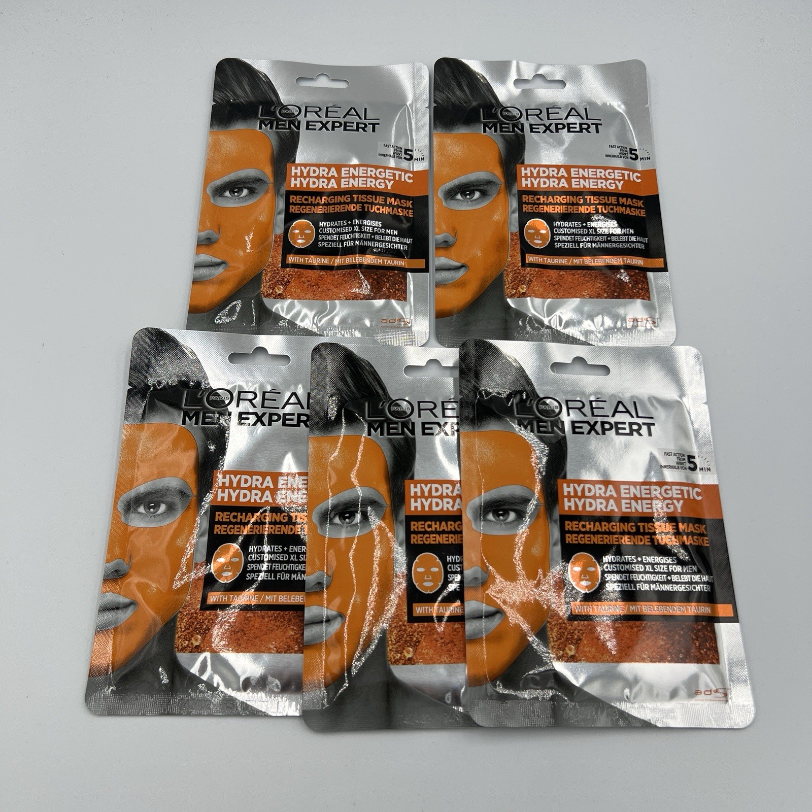 L'Oreal Paris Men Expert Hydra Energetic Tissue Face Mask 5 x 30g FREEPOST