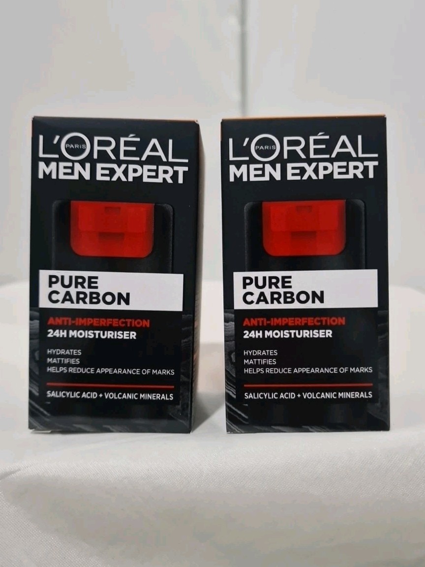 L'Oreal Men Expert Pure Carbon Anti Imperfection Moisturiser 2 x 50ml, NEW