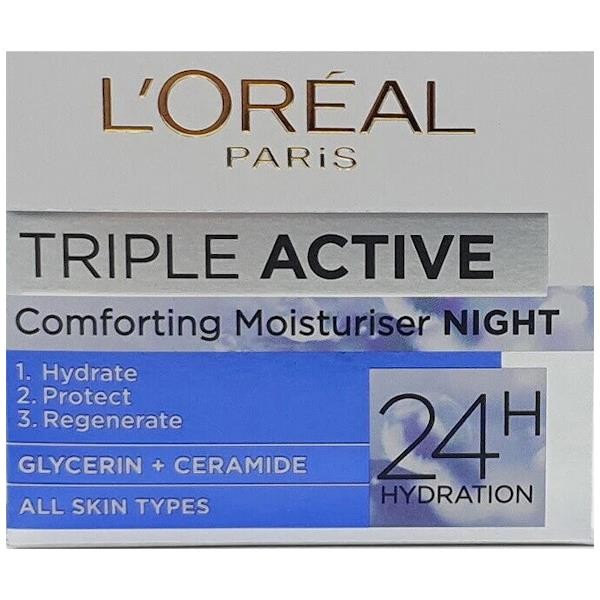 2x L'Oreal Paris Triple Active Comforting Moisturiser Night Cream 50ml. Ceramide