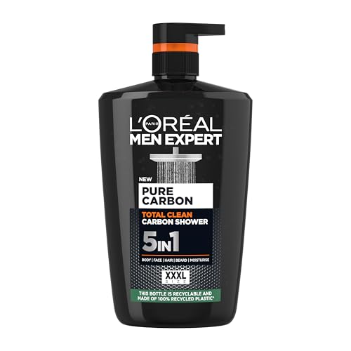 L'Oréal Men Expert, Pure Carbon, 5-in-1 XXL Shower Gel, A Total Action Body, Face, Hair Wash, Shave and Moisturiser Powered By Carbon, Total 5-in-1 Action, Large 1L Pump