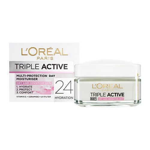 3 x L'Oreal Triple Active Moisturiser Day Dry and Sensitive Skin 50ml