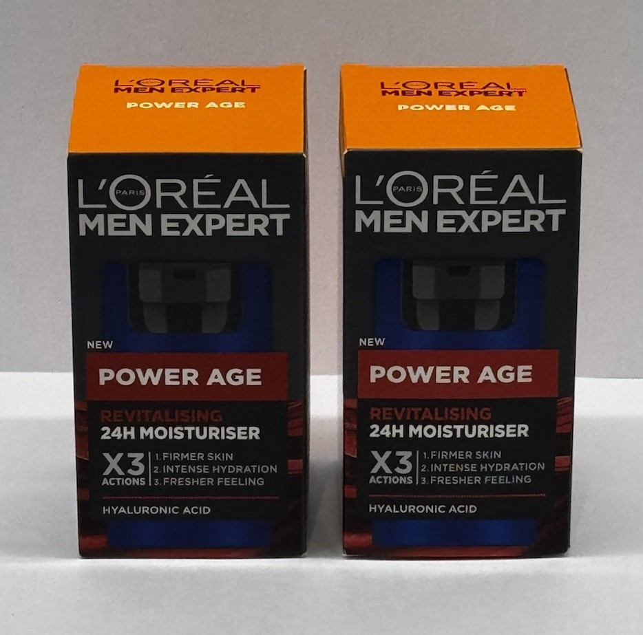 L'Oreal Men Expert Power Age Revitalising Moisturiser 2 x 50ml | Hyaluronic Acid