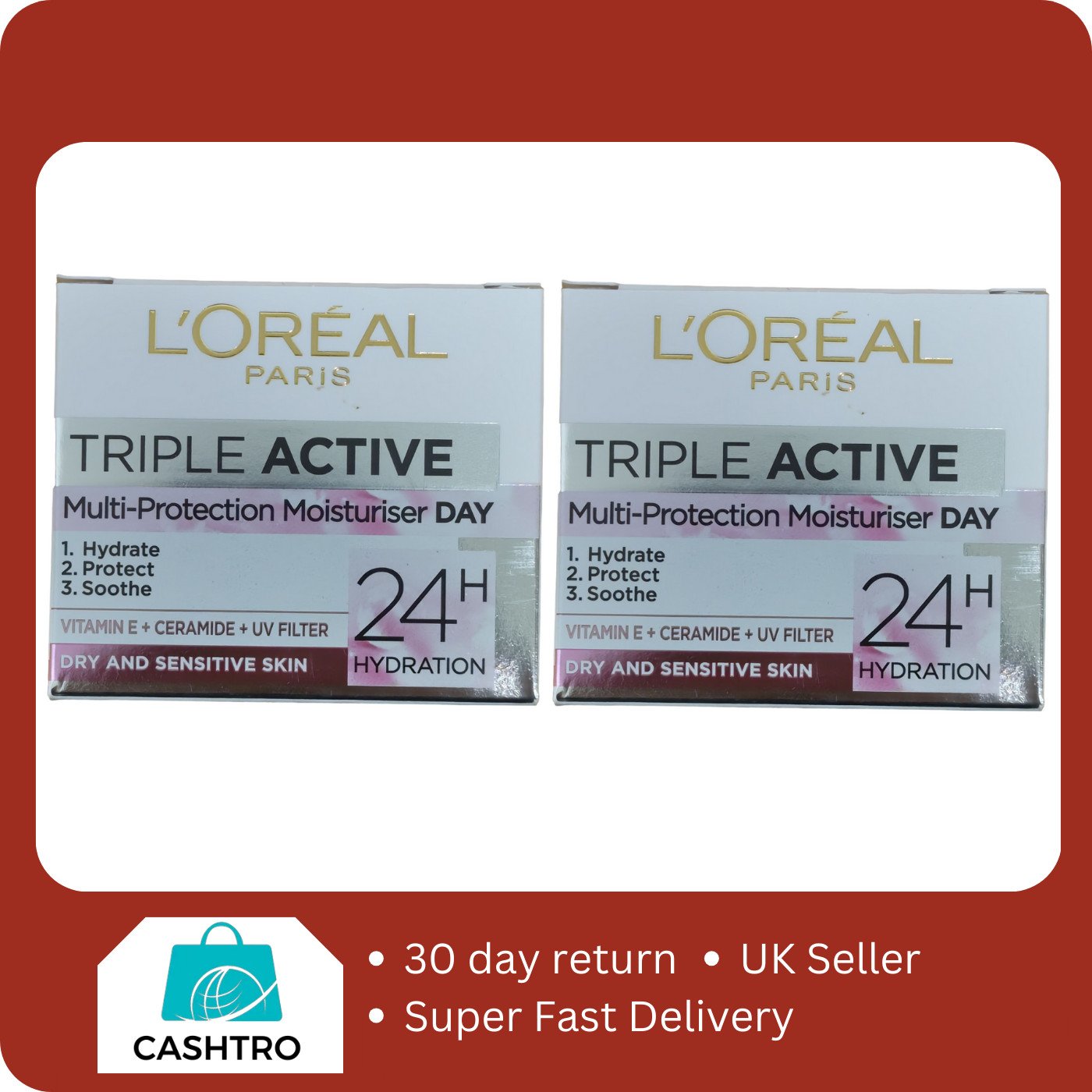 L'OREAL Triple Active Multi-Protection Moisturiser Day Dry-Sensitive Skin 2x50ml