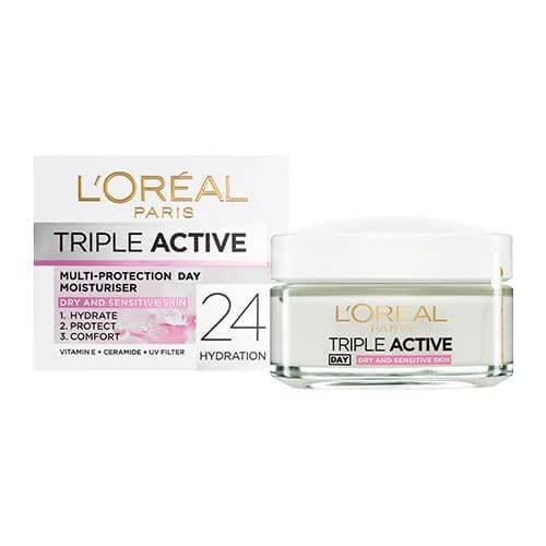 2 X L'Oreal Paris Triple Active Moisturiser Day for Dry and Sensitive Skin 50ml
