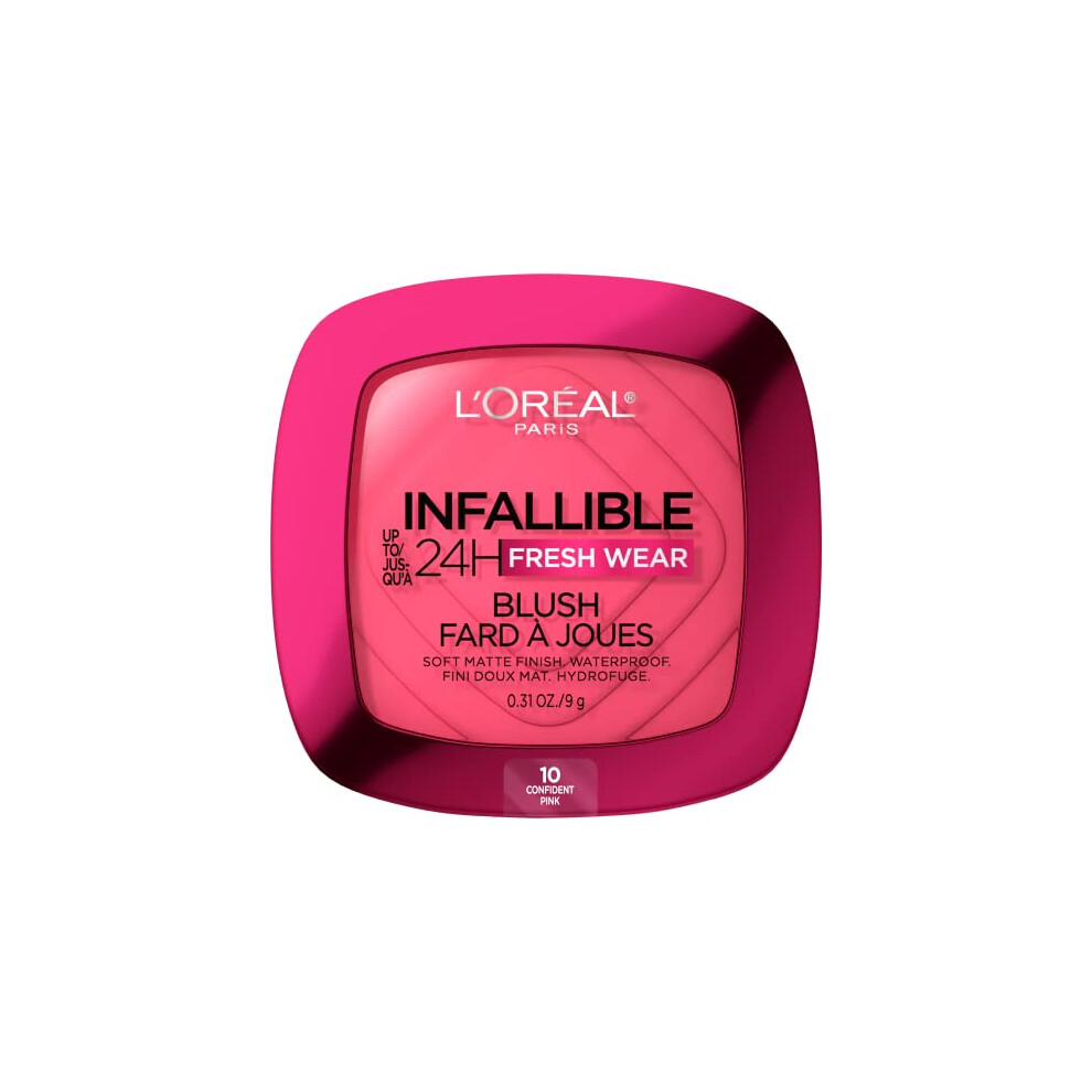 L'Oreal Paris Infallible Up to 24H Fresh Wear Soft Matte Blush Blendable Long-Lasting and Waterproof Cheek Make Up Confident Pink 10 0.31 Oz