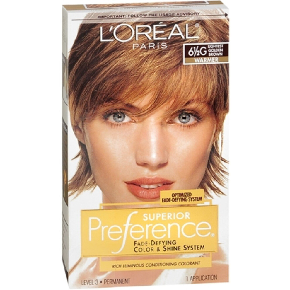 L'Oreal Paris Superior Preference Fade-Defying Shine Permanent Hair Color, 6.5G Lightest Golden Brown, 1 Kit