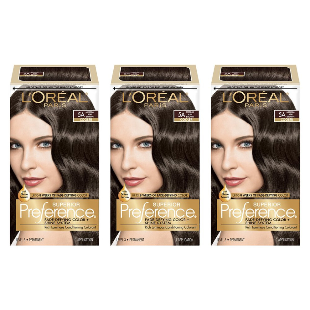 L'Oreal Paris Superior Preference Fade-Defying + Shine Permanent Hair Color 5A Ash Brown Pack of 3 Hair Dye