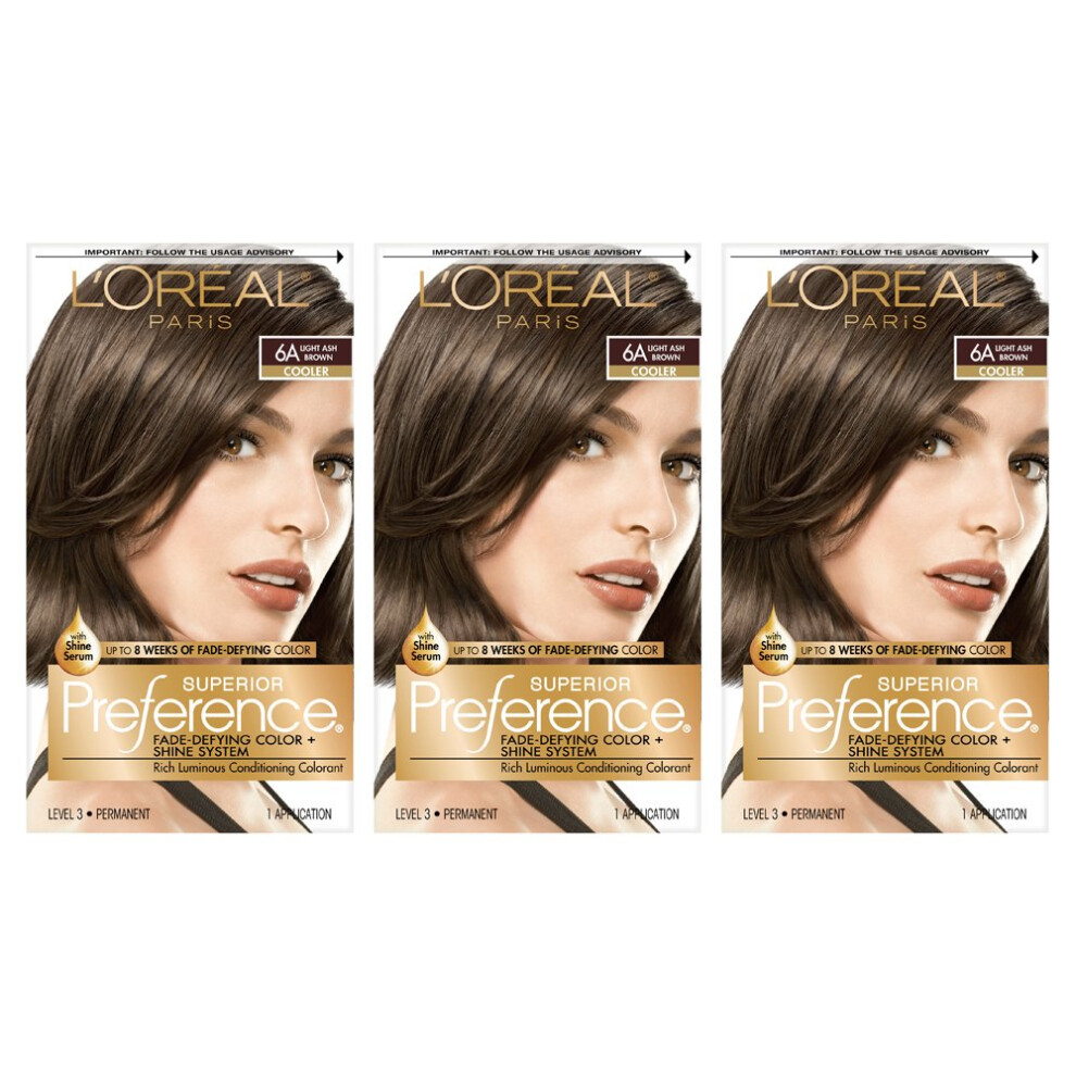 L'Oreal Paris Superior Preference Fade-Defying + Shine Permanent Hair Color 6A Light Ash Brown Pack of 3 Hair Dye