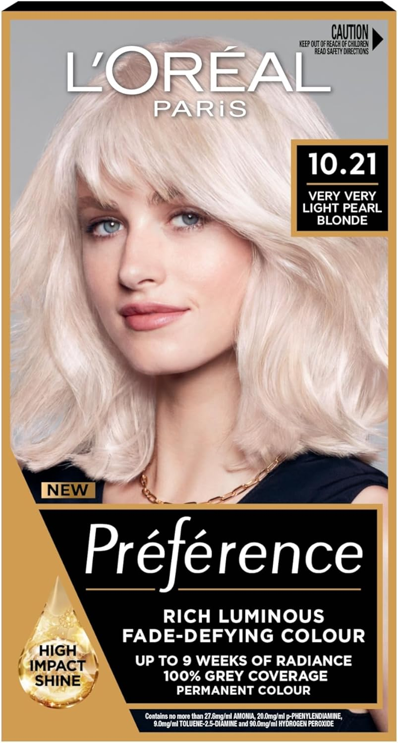 LOral Paris Preference Permanent Hair Dye, Luminous Colour, Very Very Light Pearl Blonde 10.21