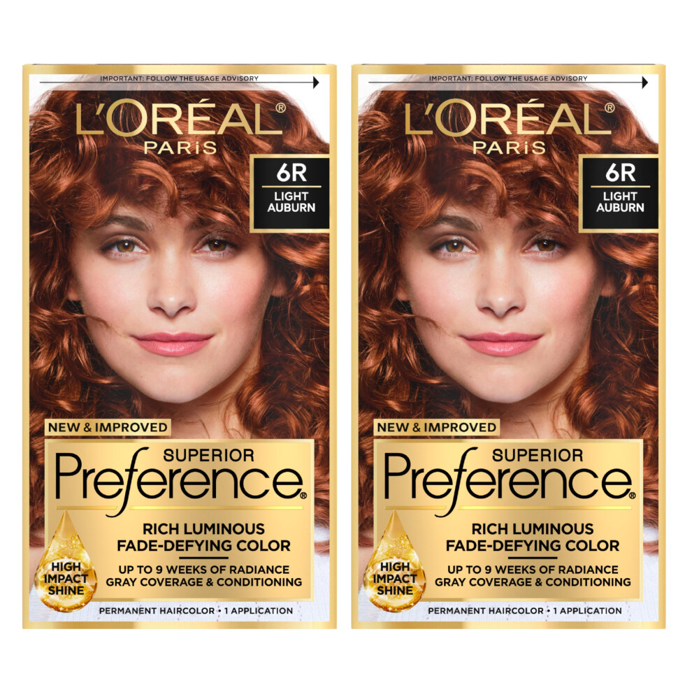 L'Oreal Paris Superior Preference Luminous Fade-Defying Permanent Hair Color Hair Dye For Up to 9 Weeks of Radiance Light Auburn 6R 1 Hair Dye Kit