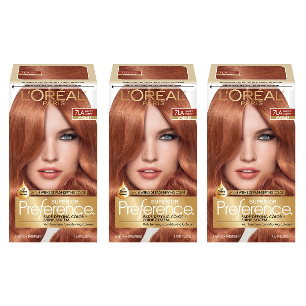 L'Oreal Paris Superior Preference Fade-Defying + Shine Permanent Hair Color 7LA Lightest Auburn Pack of 3 Hair Dye