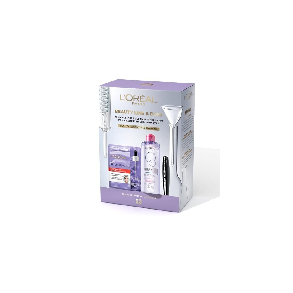 Beauty Like A Boss Gift Set - Revitalift Filler Hyaluronic Acid Mask, Micellar Water & Mega Volume Mascara Brush