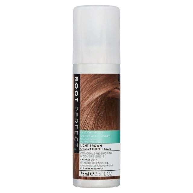 ROOT PERFECT Root Touch Up Spray – Light Brown, Instant Root Concealer for Grey Coverage, Temporary Hair Colour Spray, Quick-Dry, Hair Disguise Solution, 75ml