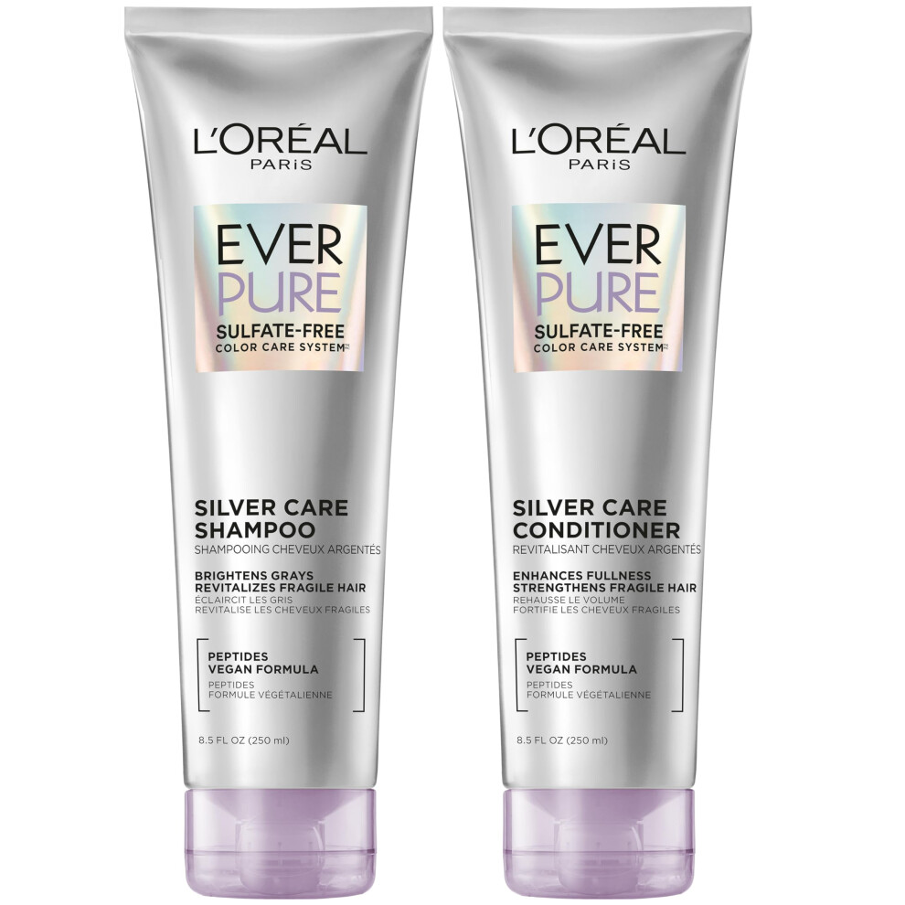 L'Oreal Paris EverPure Silver Care Sulfate Free Shampoo and Conditioner Set Nourishing Vegan Formula with Peptides for Brightening Gray Hair 1