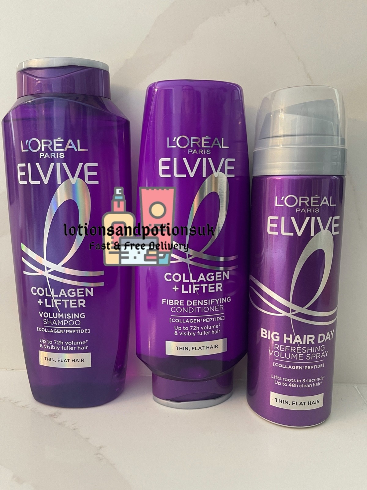 L'oreal Elvive Collagen + Lifter Shampoo, Conditioner, Big Hair Day Volume Spray