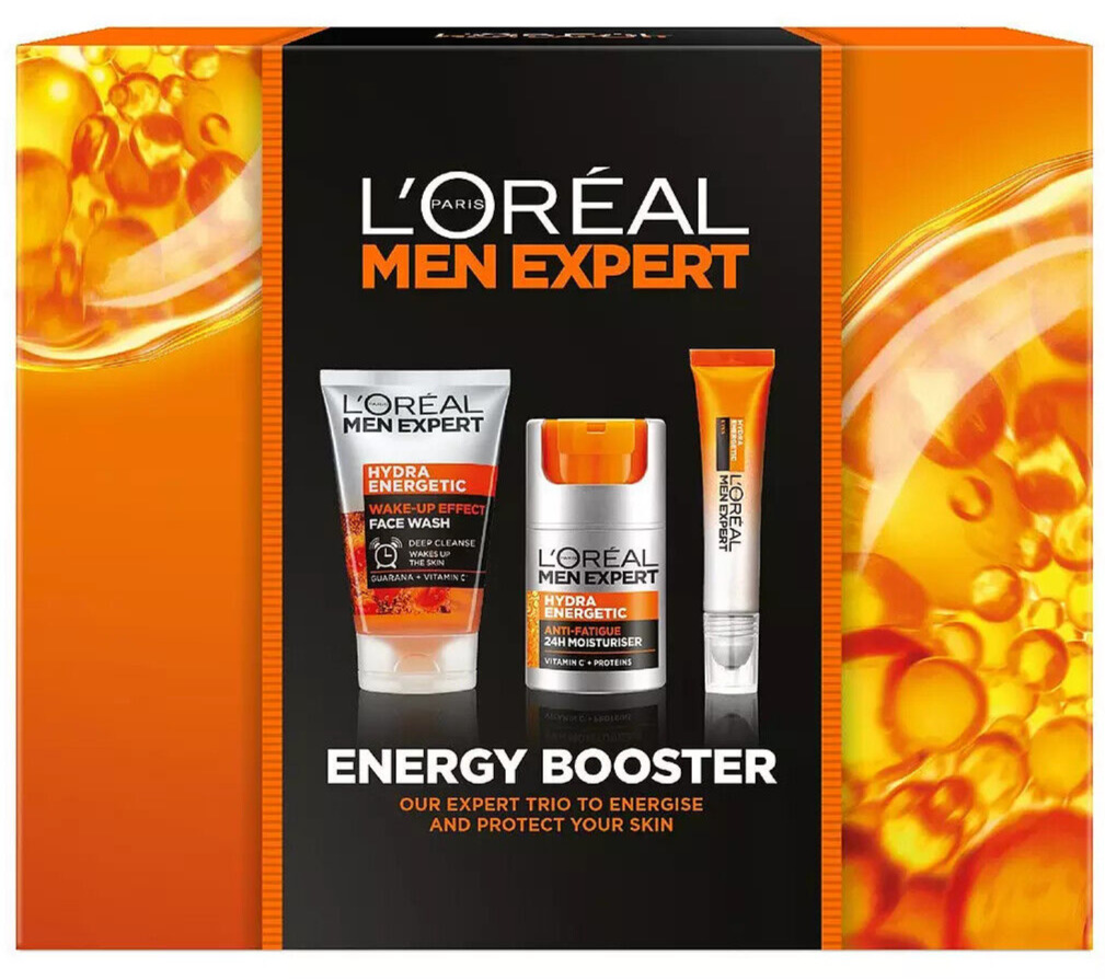 Men Expert LOreal Energiser Discovery Gift Set, Mens Skincare For Him Featuring: Hydra Energetic Vitamin C Anti-Fatigue Moisturiser [50ml]