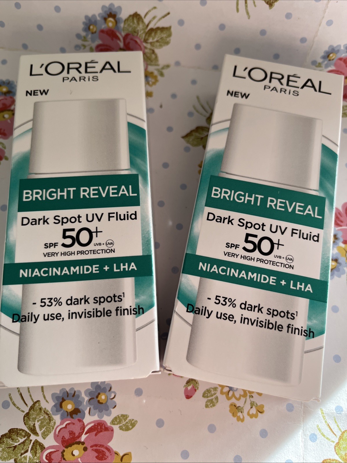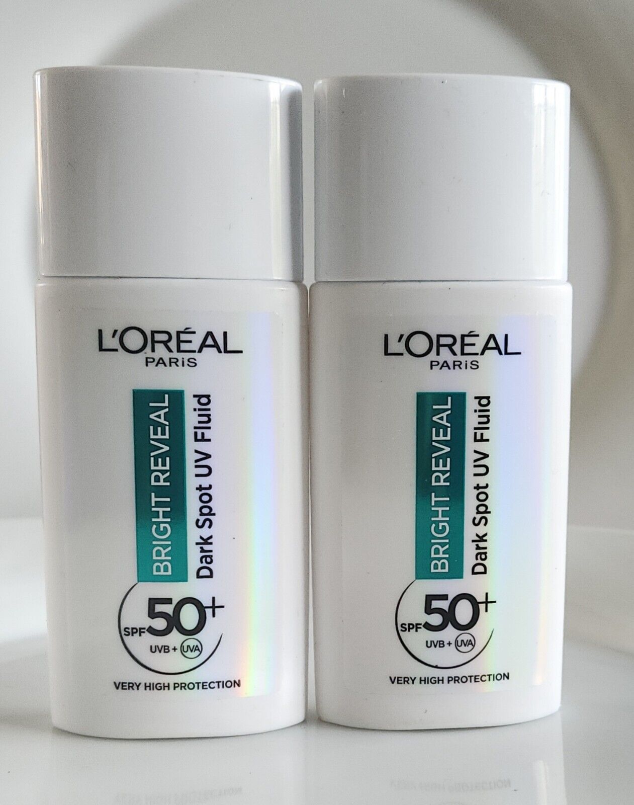 L'Oréal Paris Bright Reveal Dark Spot UV Fluid SPF 50+ Niacinamide 50ml New X 2