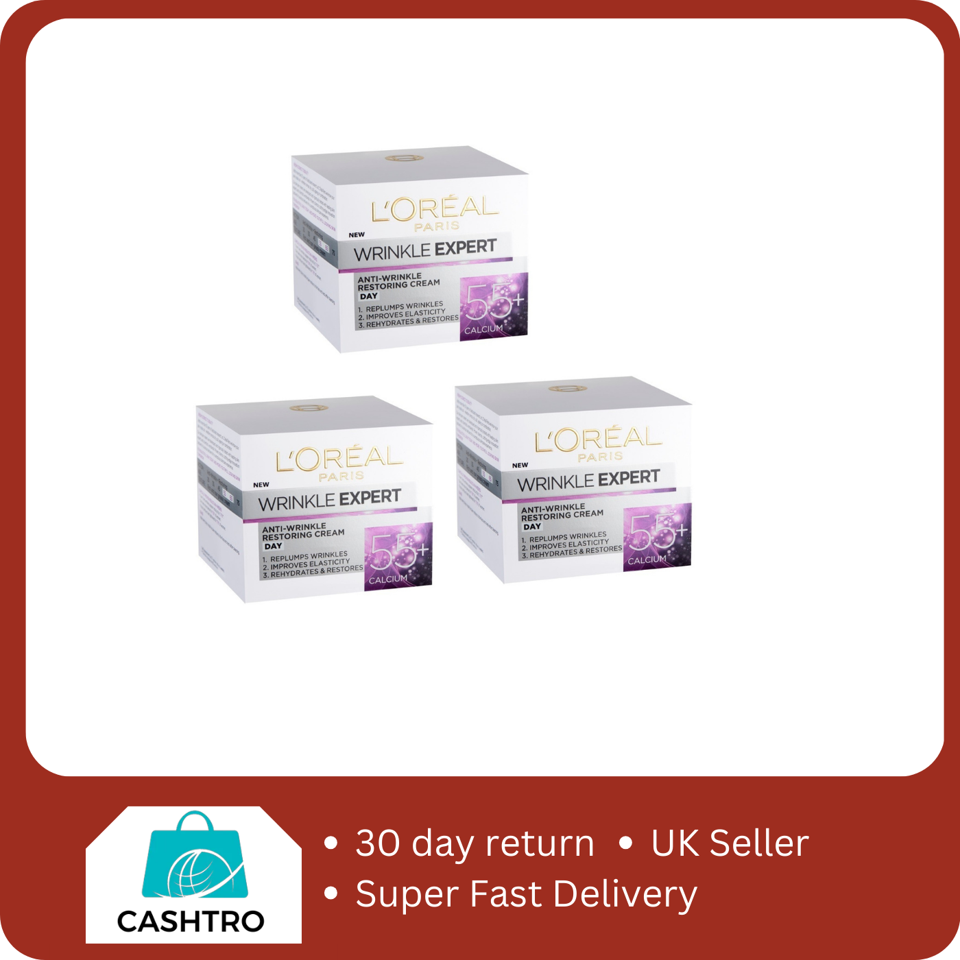 (THREE PACKS) L'Oreal Wrinkle Expert 55+ Anti-Wrinkle Day Cream 50ml