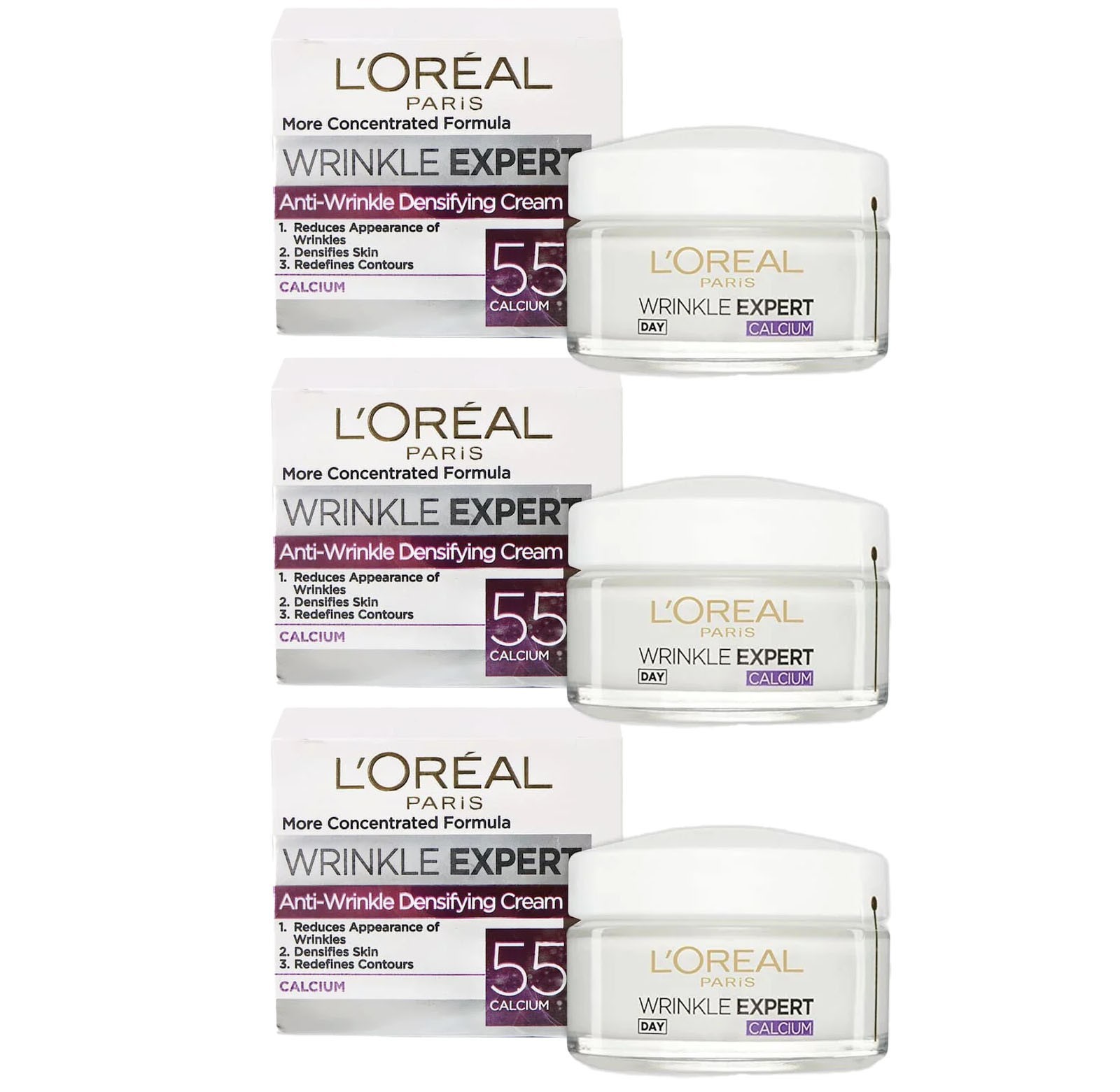 3x L'Oreal Paris Wrinkle Expert 55+ Calcium Day Pot 50ml