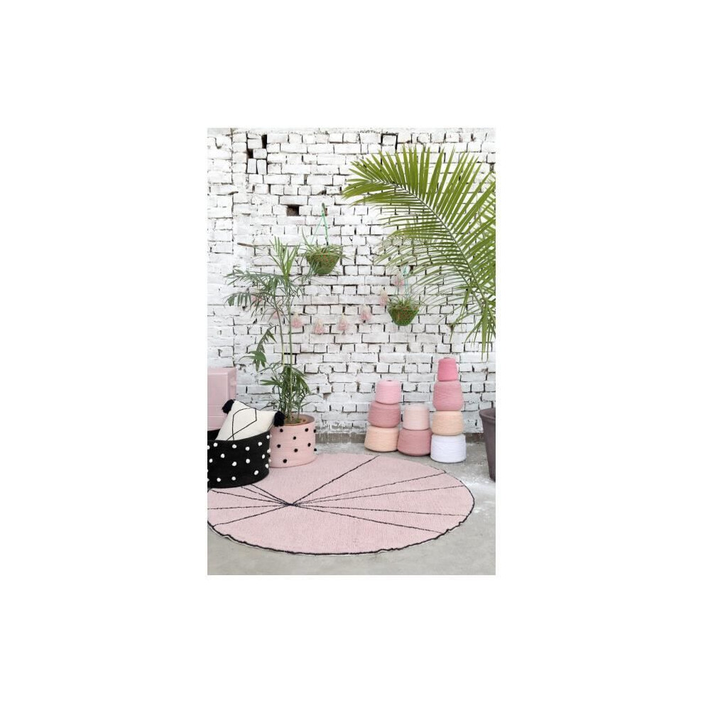 Washable Round Cotton Rug with Pompoms by LORENA CANALS rose