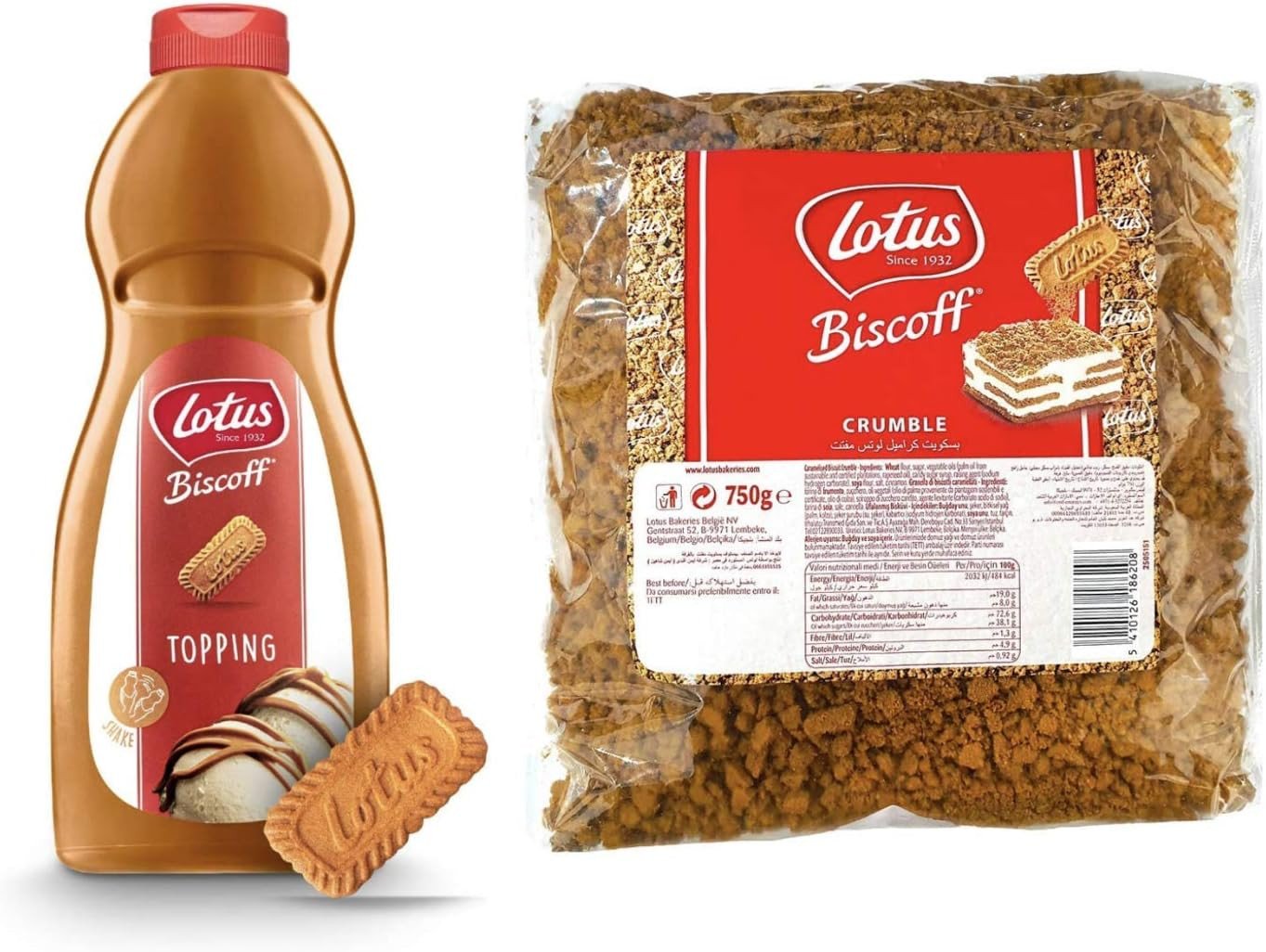 Lotus Biscoff Dessert Combo: 1Kg Sauce & 750G Crushed Crumbs Bundle