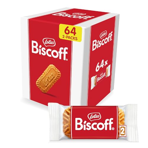 Lotus Biscoff, Caramelised Biscuit, 64 Indivually Wrapped 2 Packs, 128 Biscuits Ingredients from Natural Origins, Vegan, Nut Free Recipe, 0.9kg