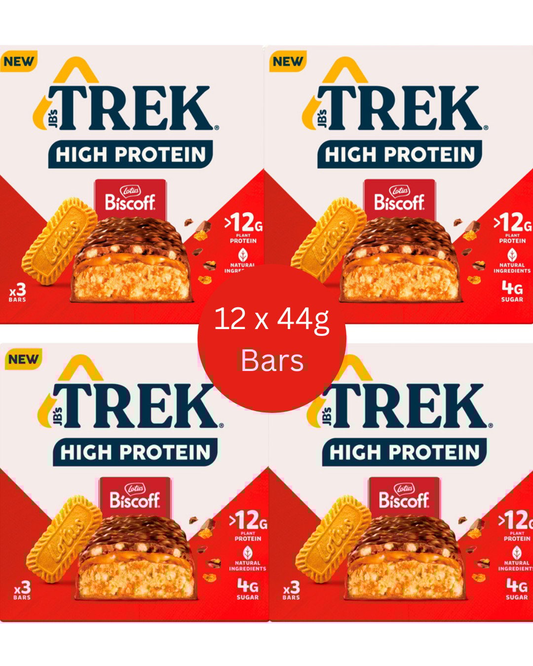 Trek Power High Fibre Protein Bar Lotus Biscoff 3 x 44g x 4 Packs, 12 Bars Total