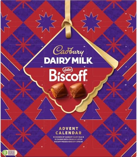 Cadbury Biscoff Festive Advent Calendar, Includes 12 Chunks of Cadbury Dairy Milk & 12 Chunks with Crunchy Lotus Biscoff Pieces & Spread, Perfect for your Christmas Countdown, 236 g (Pack of 1)
