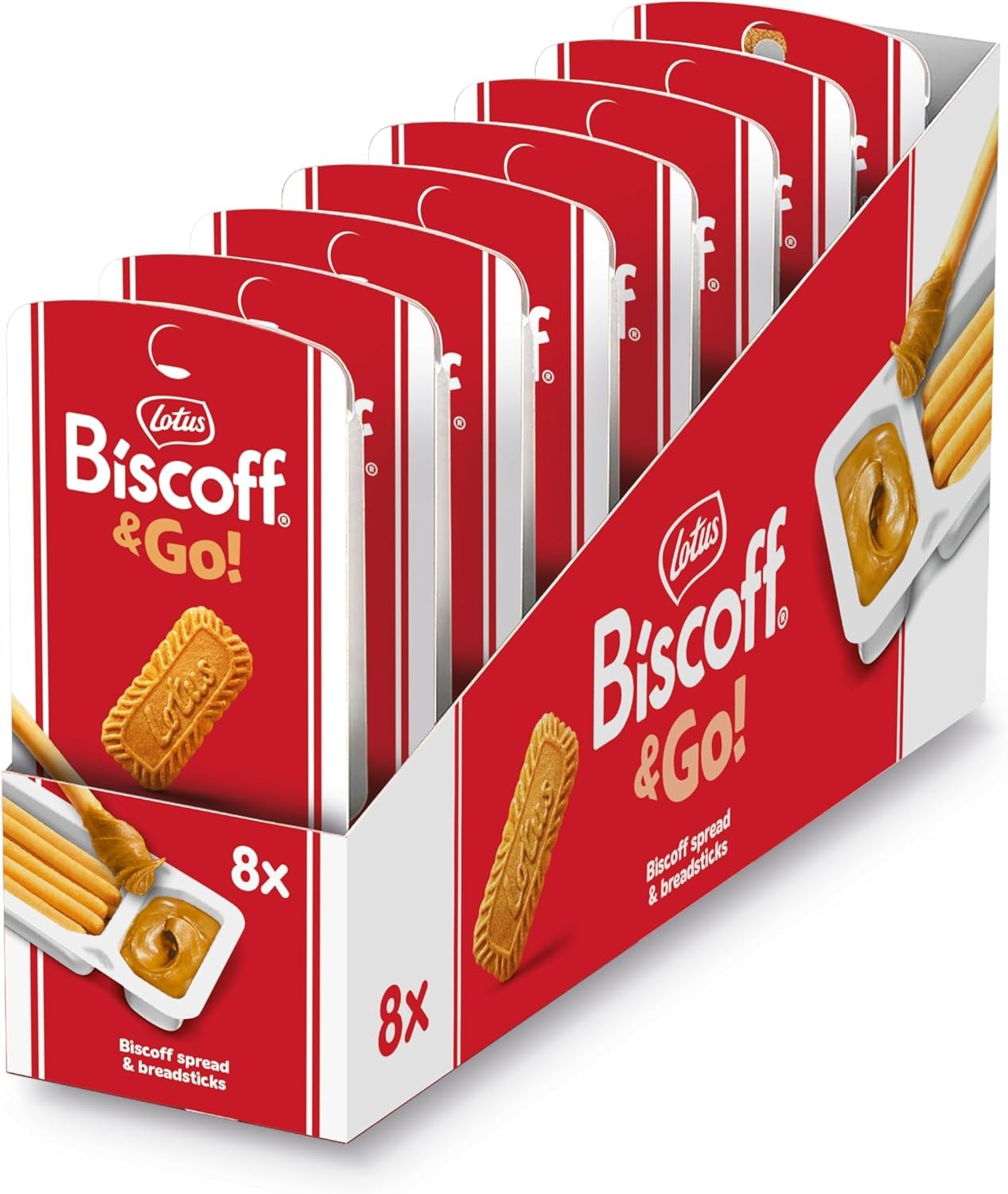 Lotus Biscoff & Go, Sweet Spread & Breadstick Snack, Caramelised Biscuit Flavour, Vegan, No Colours or Added Flavours, 8x45g, 360g