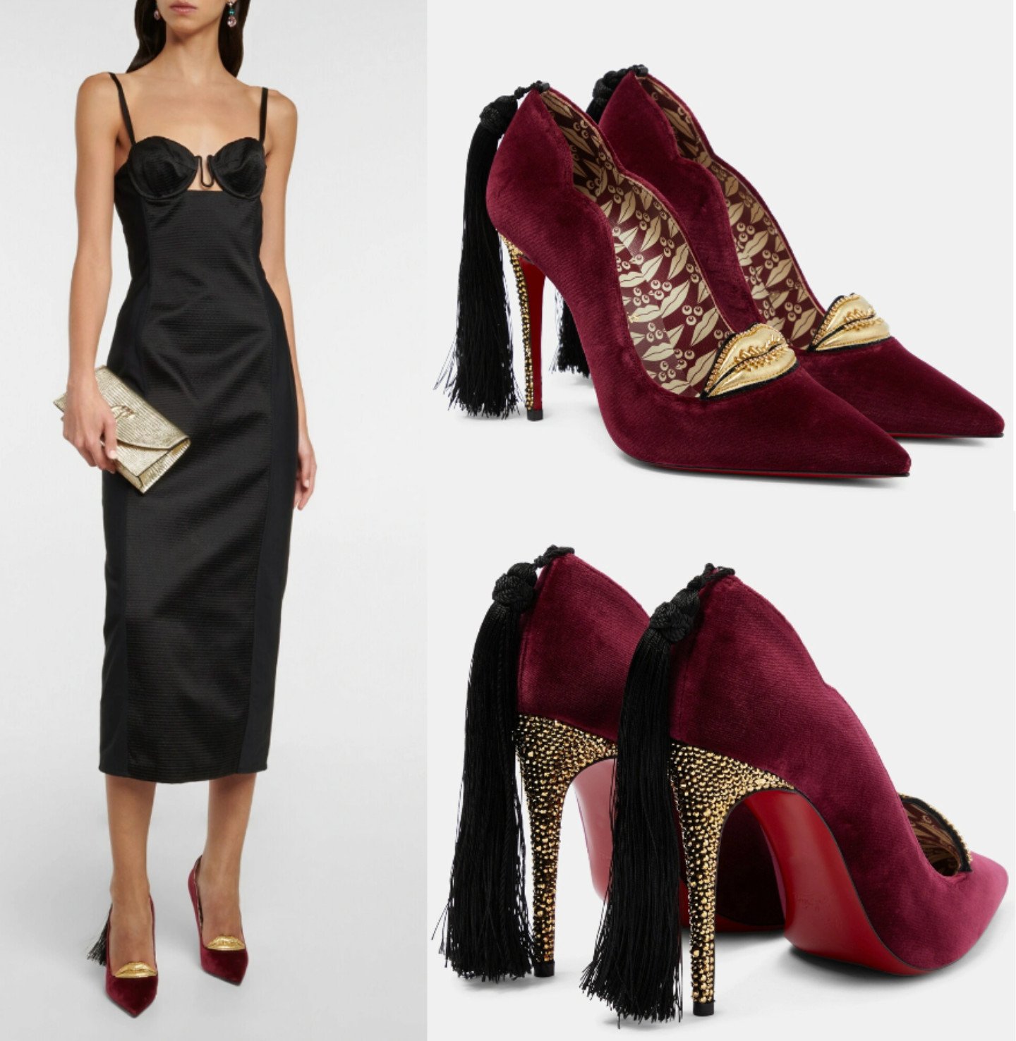 Christian Louboutin Pumps Hot Chick Kiss Tasselled Velvet Gold High Heels Shoes