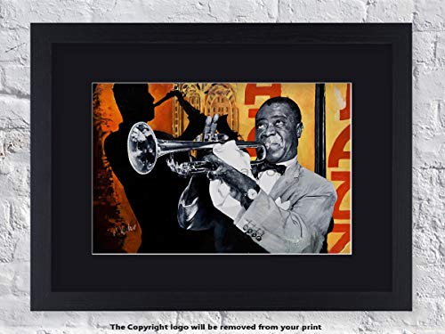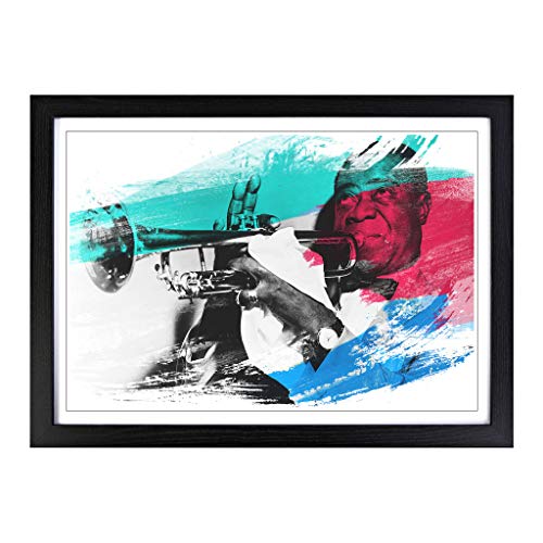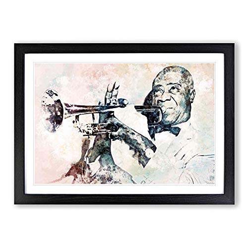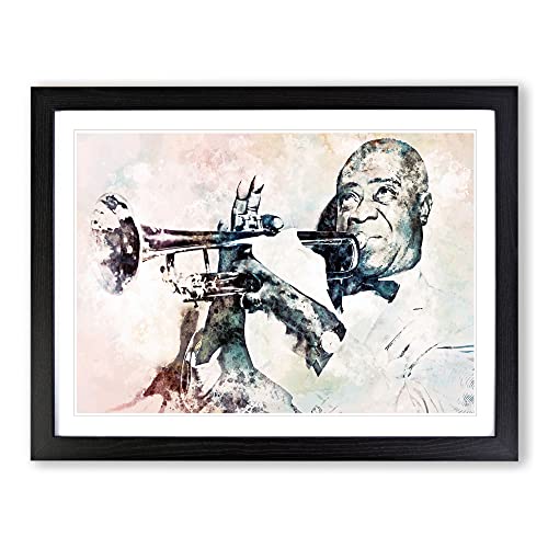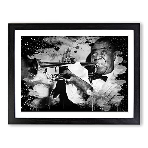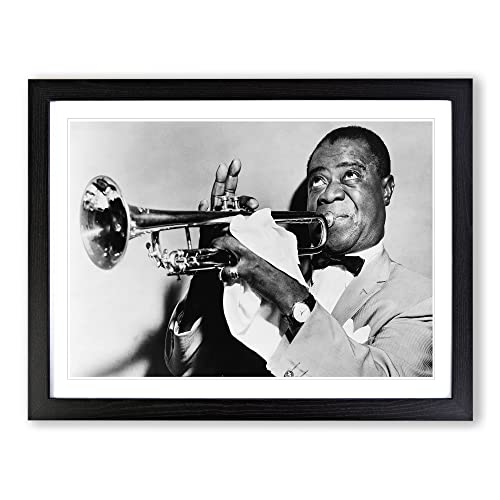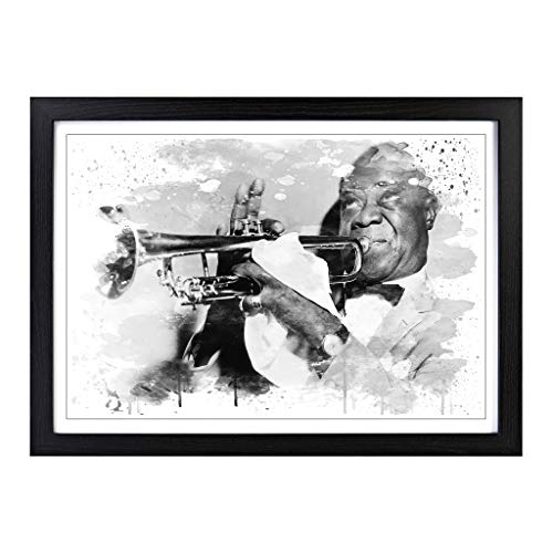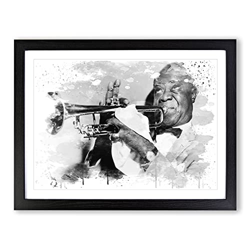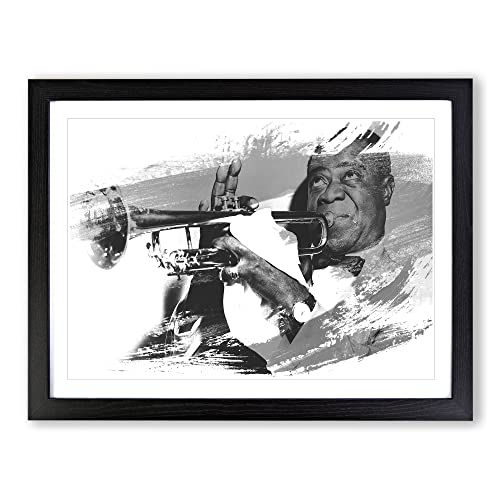 Louis Armstrong V3 Modern Framed Wall Art Print, Ready to Hang Picture for Living Room Bedroom Home Office Décor, Black A3 (46 x 34 cm)