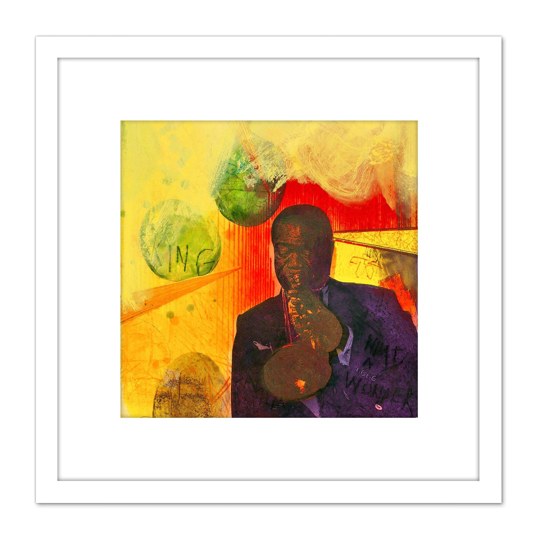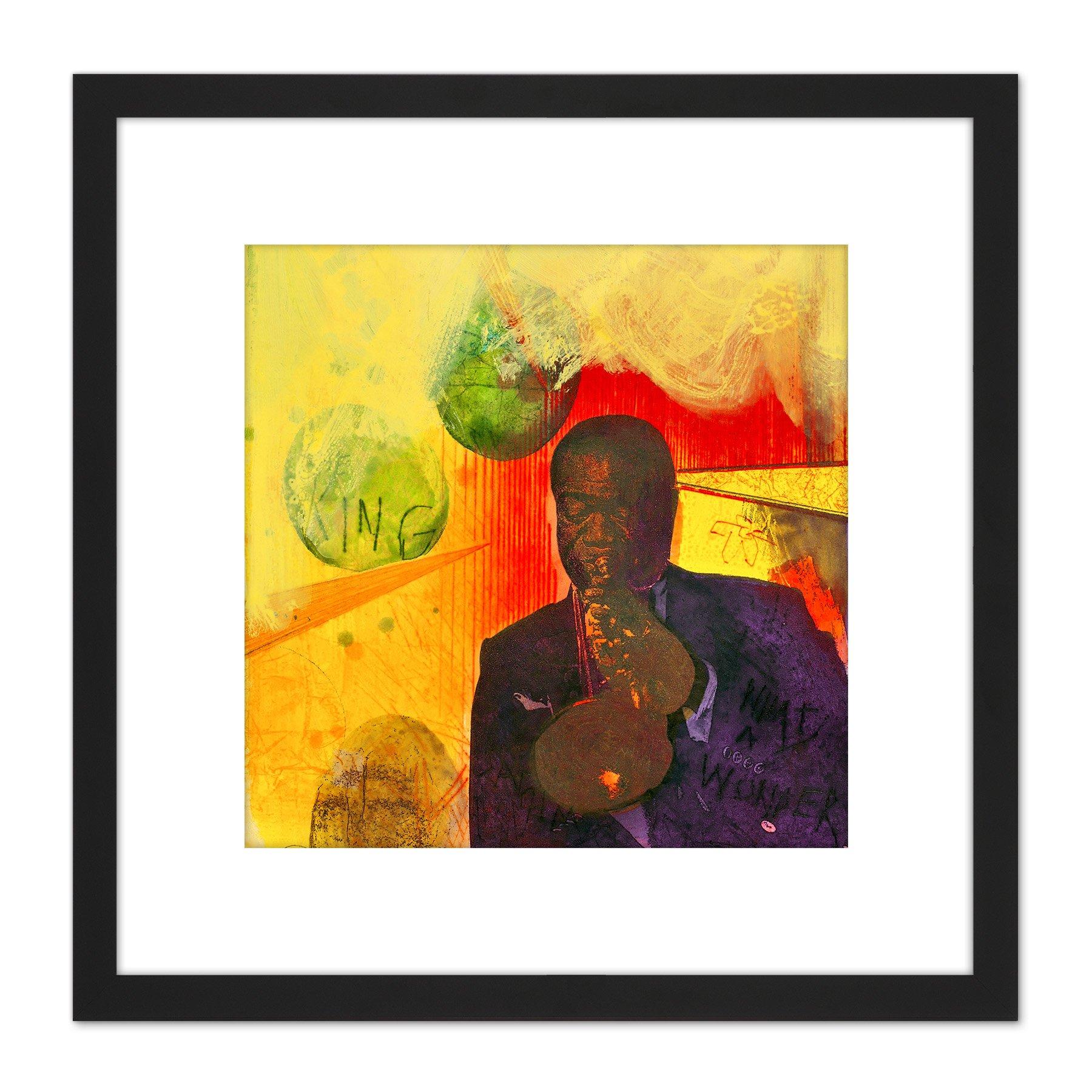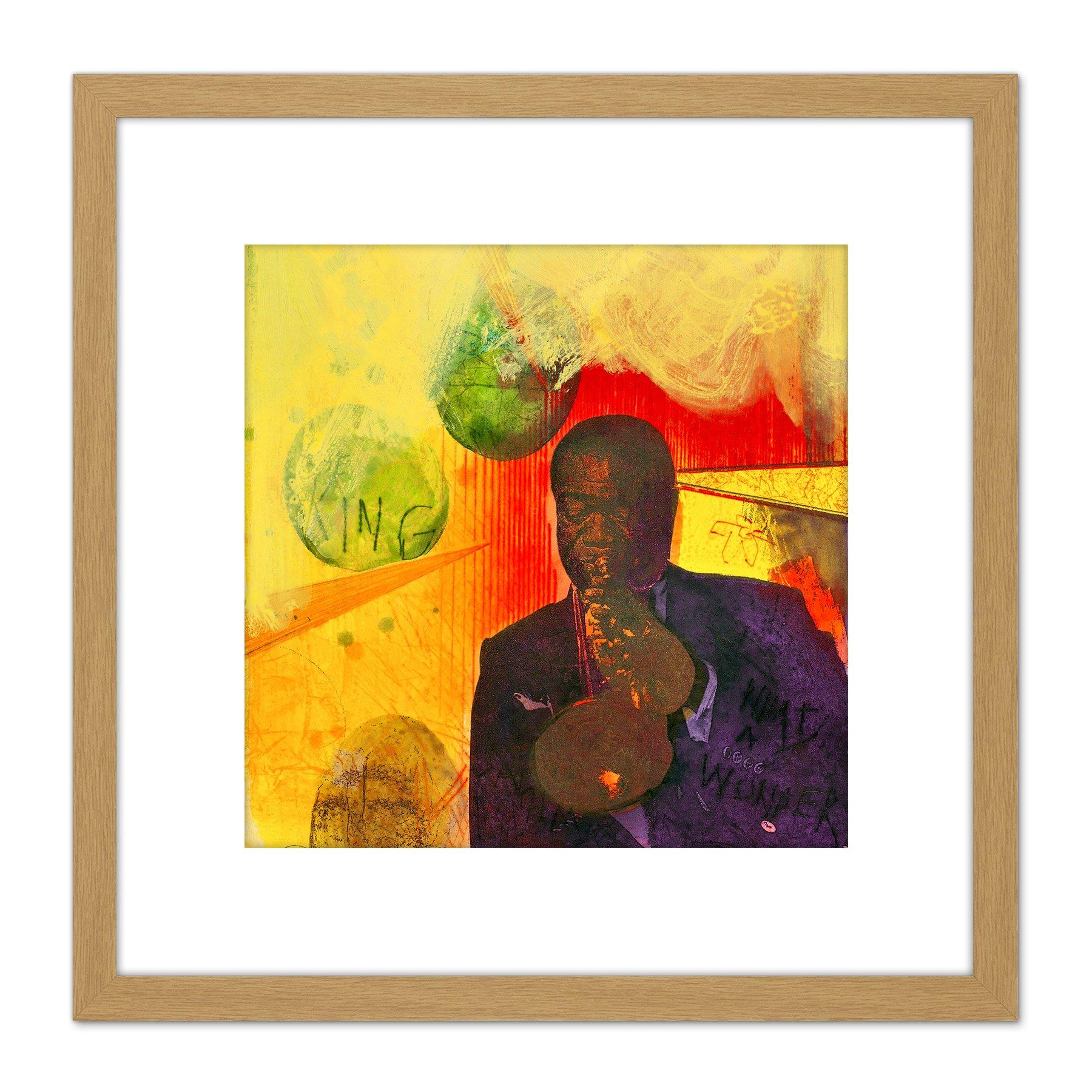 Adi Holzer 899 Satchmo Louis Armstrong Painting 8X8 Inch Square Wooden Framed Wall Art Print Picture with Mount