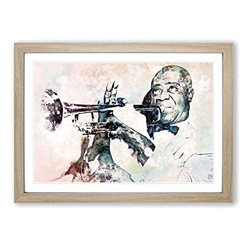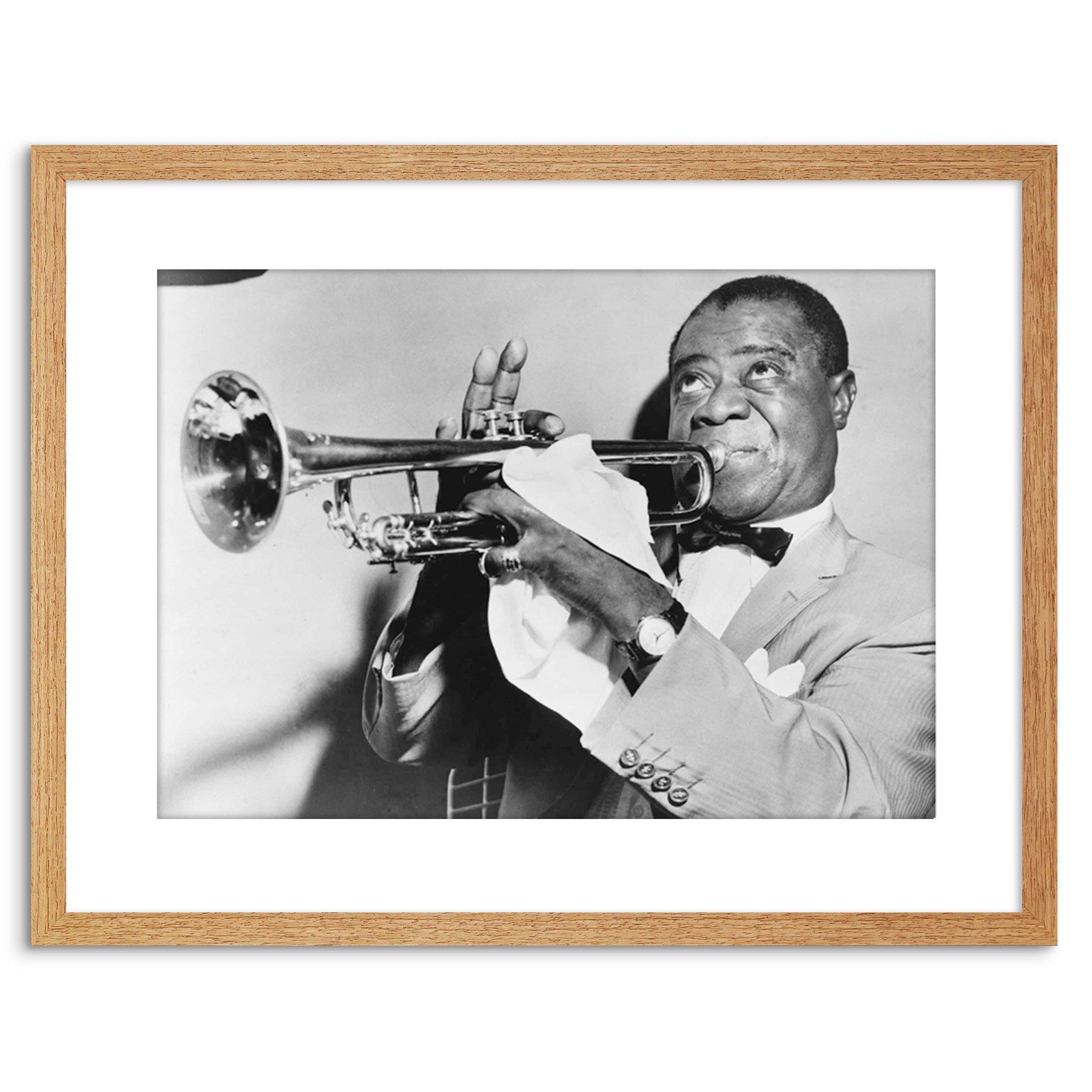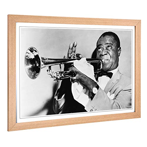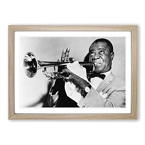 Big Box Art Framed Print of Louis Armstrong Design | Wall Art Picture | Home Decor for Kitchen, Living, Dining Room, Lounge, Bedroom, Hallway, Office, Oak, A2 / 24.5x18 Inch / 62x45cm