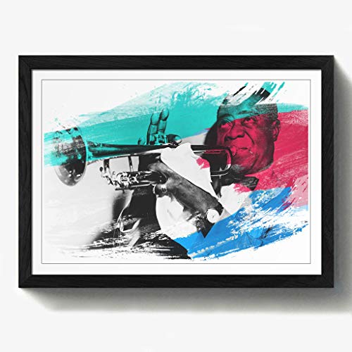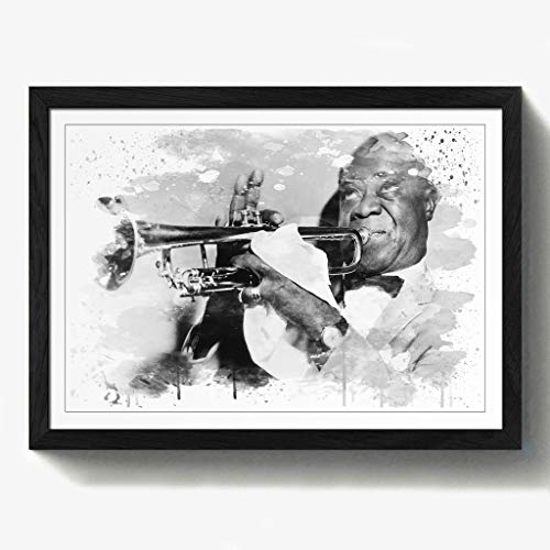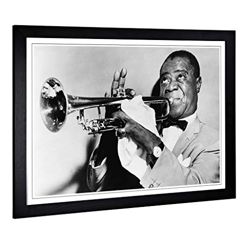 Louis Armstrong Modern Framed Wall Art Print, Ready to Hang Picture for Living Room Bedroom Home Office Décor, Black A2 (64 x 46 cm)