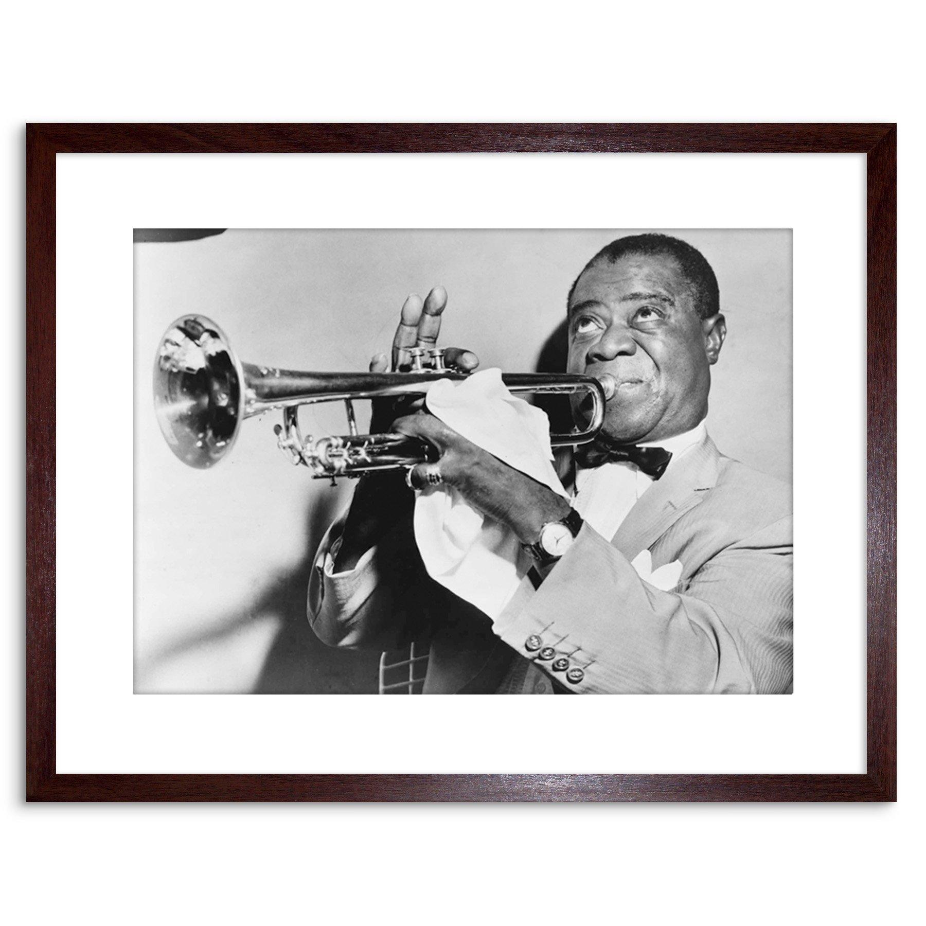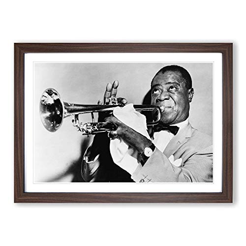 Big Box Art Framed Print of Louis Armstrong Design | Wall Art Picture | Home Decor for Kitchen, Living, Dining Room, Lounge, Bedroom, Hallway, Office, Walnut, A2 / 24.5x18 Inch / 62x45cm