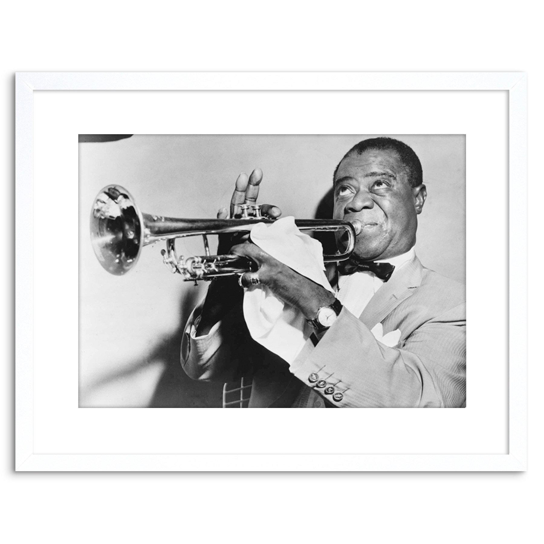 Photo Music Jazz Louis Armstrong Playing Trumpet Artwork Framed Wall Art Print A4