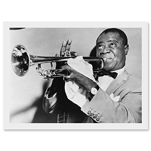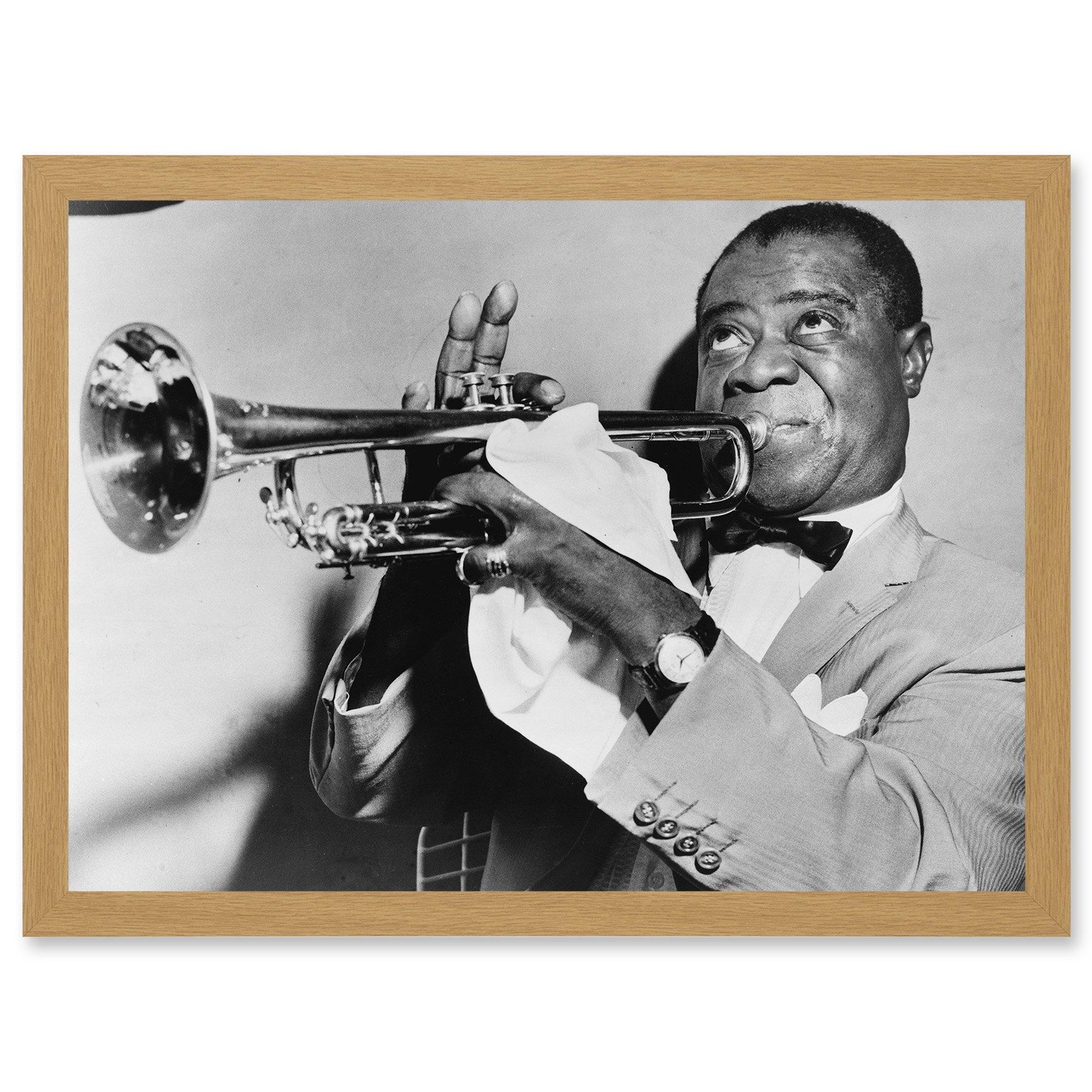 Artery8 Photo Music Jazz Louis Armstrong Playing Trumpet Artwork Framed Wall Art Print A4