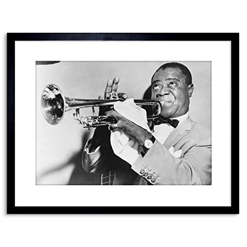 Photo Music Jazz Louis Armstrong Playing Trumpet Artwork Framed Wall Art Print 9X7 Inch