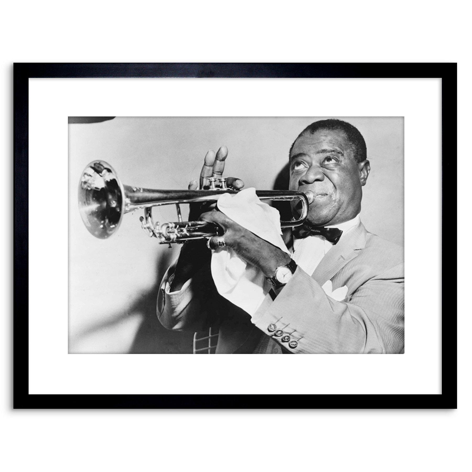 Big Box Art Framed Print of Louis Armstrong Design | Wall Art Picture | Home Decor for Kitchen, Living, Dining Room, Lounge, Bedroom, Hallway, Office, Black, A2 / 24.5x18 Inch / 62x45cm