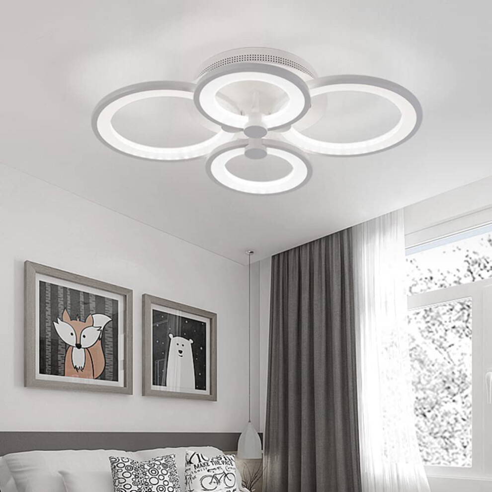 XEMQENER Modern LED Ceiling Light, Flush Mount Lighting Fixture with 4 White Rings, Acrylic Chandelier Lamp for Living Room, Bedroom, Lounge and