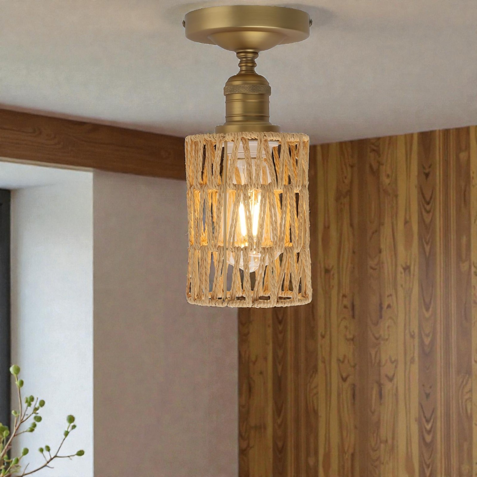 Ceiling Pendant Light Vintage Rattan Flush Lighting Home Decor Lounge Bedroom