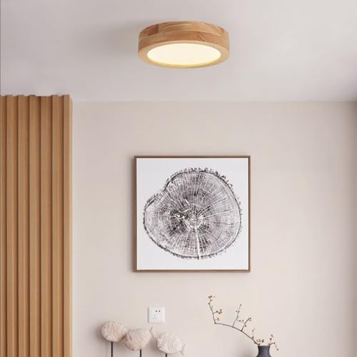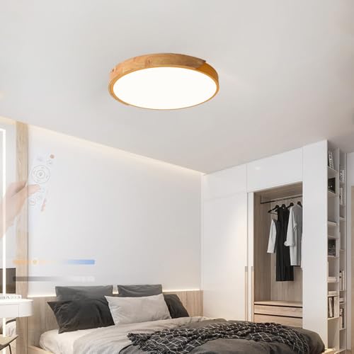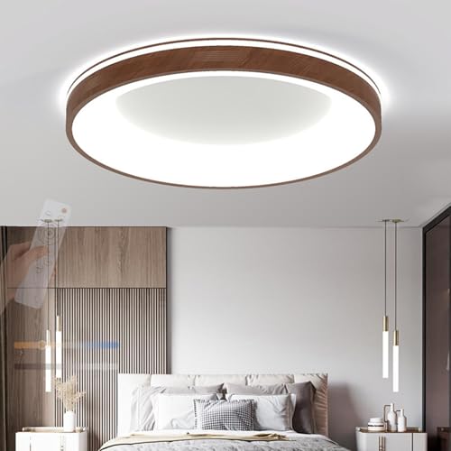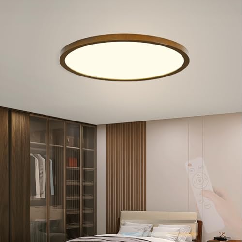 LED Solid Wood Ceiling Lights with Remote Control Ceiling Lighting 2700K-6500K Dimmable Ceiling Lamp Modern Minimalist Round Decorative for Living Room Kitchen Lounge