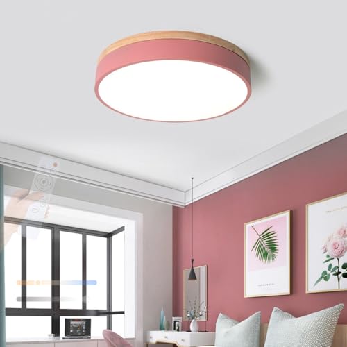Dimmable Wood LED Ceiling Light with Remote Control Ceiling Lamp Dimmable 2700K-6500K Ceiling Lights Modern Indoor Ceiling Lighting Flush Mount for Living Room Kitchen Lounge